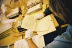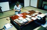 Pamela Asquith checking contents of a portion of archive in the Imanishi home (06/01). |