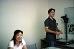 Kaoru ADACHI and Peter Ryan testing photography in Mainichi Newspaper offices (07/02). |